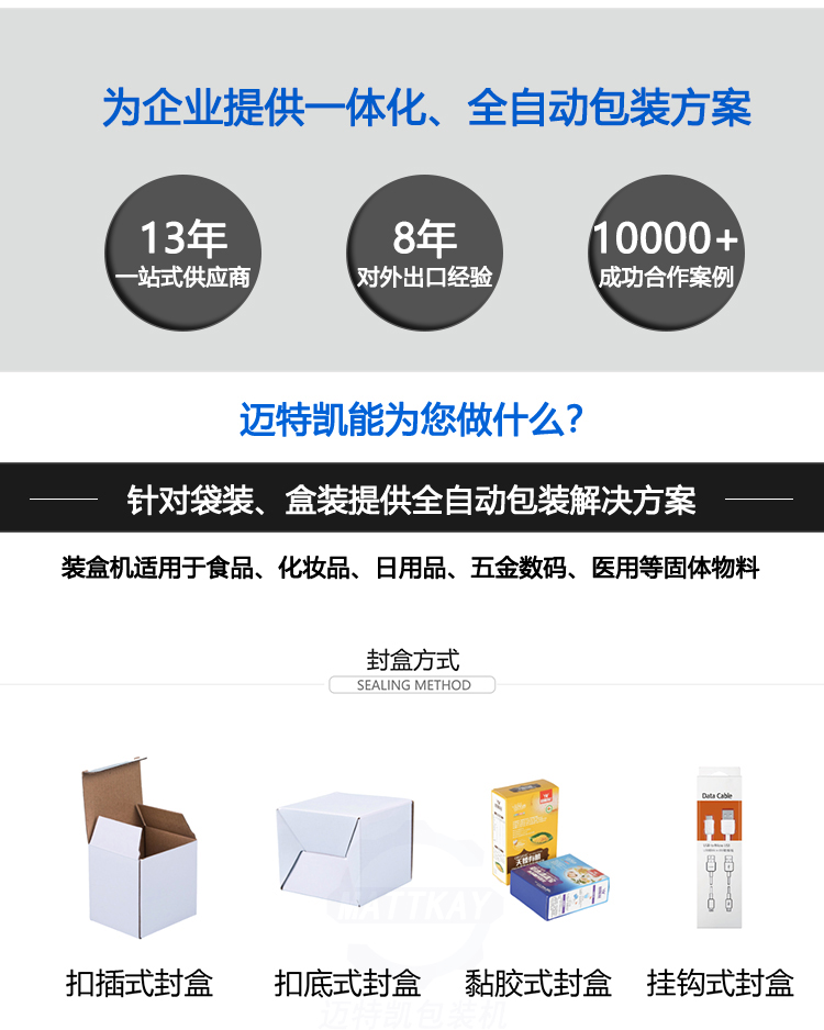 7.可根據(jù)包裝物要求設計各種自動下料器和入盒系統(tǒng);